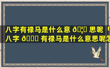 八 🦋 字中有禄马的含 🌲 义 🐡