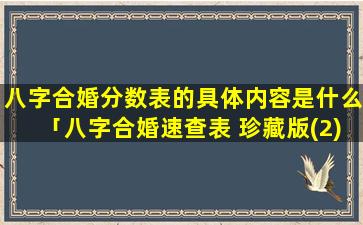 八字合 🌾 婚速查表 (珍 🐼 藏版)