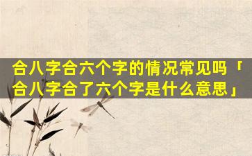 六个字相合表示男命和女命八字中有多处相合之处,被认为是比较吉利的合婚结果。通 💐 ,常来说八字合六个字的婚姻表示: