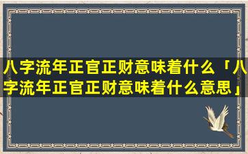因 ☘ 此,八字流年正官正财意味着: