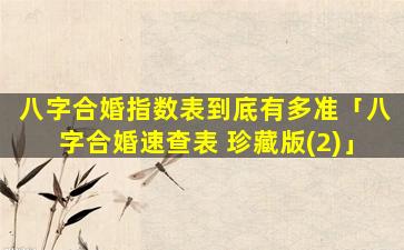 准确性八字合婚指数表的准确性存在争议,因,为影响夫妻关系的因素很多包括性格、价、值观沟通方 🐘 式等。一,些,研。究表明八字合婚指数表可以作为一个参考但不能完全依赖