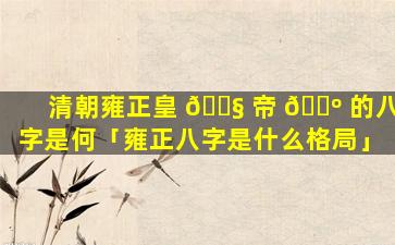综合以 🕸 上因素,雍,正,皇,帝八字贵气十足预示其 🐎 一生贵人相助官场得意功成名就。