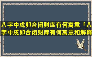 寓意:戌 🐟 卯合闭财库 🌷 寓意着: