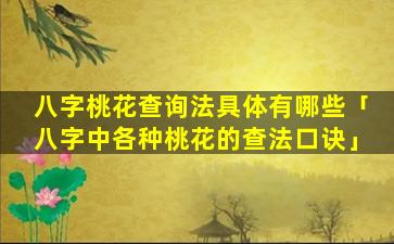 八 🐘 字桃花查法 🦟