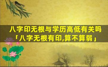 八字中“印”代表着教育、学历和学习能 🐅 力。而“无”根。是指印星在八字中没有 🌷 强有力的生扶