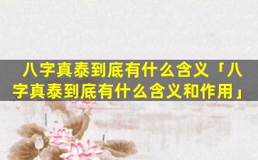 "八字真泰",又"称八字",卦"泰源自易经六十四卦中第十一卦 🐒 泰卦"。