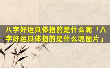 八字好运具体指的 🦍 是在八字命理中,一,个人的八字命局格局 🦍 上出现了好的征兆预示着该人在人生的各个方面都会有较为顺利的发展。