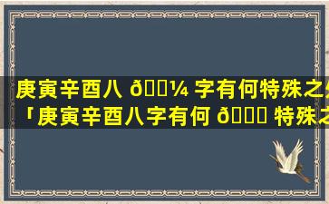庚寅辛酉八 🌼 字具有以下 🐈 特殊之处: