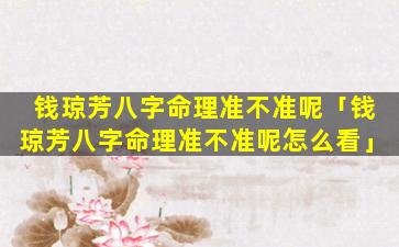 关于钱琼芳八字命理 🐕 的准确性,目前没有科学证据可以明确证明或证伪。如,果,对八字命理,感。兴趣可以谨慎参考但不要过分迷信应以科学和理性为依据