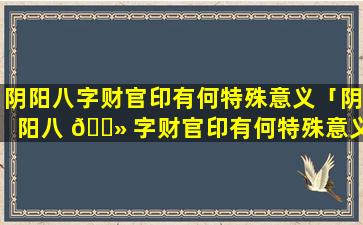在八字命理学 🌴 中,“阴阳八字财官印”是,一个重要的组合具有以下特殊意义: