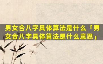 男女合 🐬 八字算法