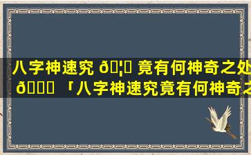 “八字神速”是一种简化版 🕷 的八 🌹 字命理学,其神奇之处主要体现在: