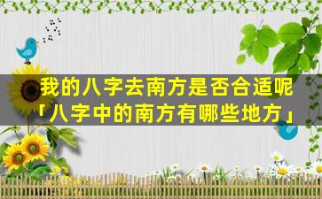 要判断八字去南方是 🦋 否合适,需要结合个人的八字五行、十、神旺衰以及相 🦢 关方 🦉 位磁场的五行属性等因素综合分析。