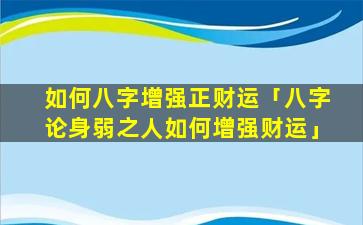 八字论身弱之 🌷 人增强财运 🐳 的方法: