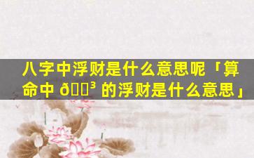 八字中的浮财是指财运不稳定、容易有意外之财 🌺 ,也容易有 🦆 破财之忧的财运类型。