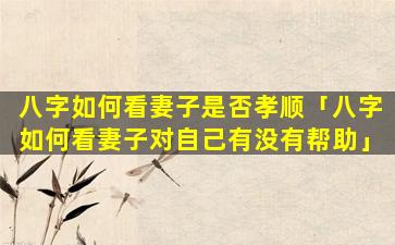 八字中看妻子 🐘 对丈夫有 🦆 无帮助