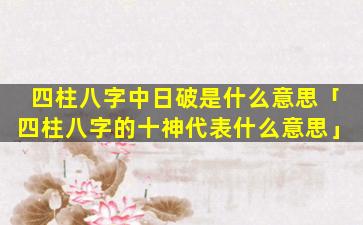 "日"破是四柱八字中 🐞 的一种格局,指日柱的天干 🕷 与年柱、月柱、时柱的,天干相冲且不形成其他化合或合解。