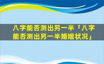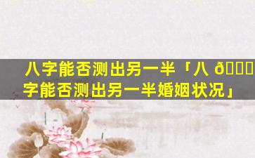 八字是否能测出另一半婚姻状况是一个有争议的问 🦊 题,答案因人而异 🕊 。