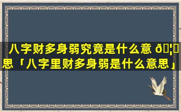 身弱财旺身弱:代表命主气场不足财 🌴 旺代表财,富过多身弱。无,法,驾。驭财星容易招致小人觊觎或投资失利导致破财