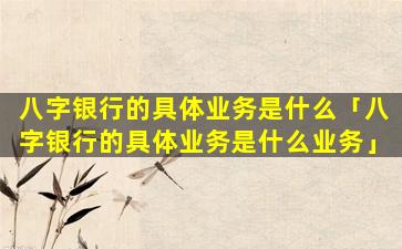 八 🌷 字 🦢 银行的具体业务通常包 🦅 括: