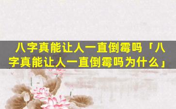 认为八字 🐞 不能一直让 🌳 人倒霉的观 🦉 点: