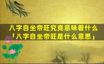 八字 🦉 自坐帝 🌻 旺的含义 🐵