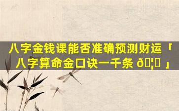 八字金钱课程是一种基于八字命理学的预测方法,旨在通过分析一个人的出生日期 🦢 和时间来判断其财运。虽,然八字命理学,在预测。某些方面例如性格和职业发展上有一定程度的准确性但预测财运的准确性存在争议和局限性