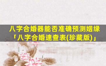 八 🐧 字 ☘ 合婚器的准 🌷 确性