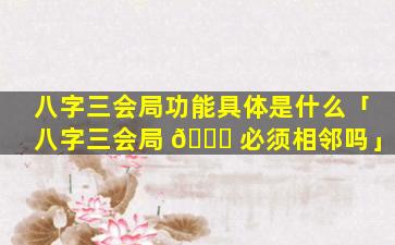 需要注意的是,三,会局的作用也会受其 🌺 他八字因素的影响如十神神、煞、星曜等因。此需要,综,合。分析八字整体格局才能准确判断三会局的具体作用
