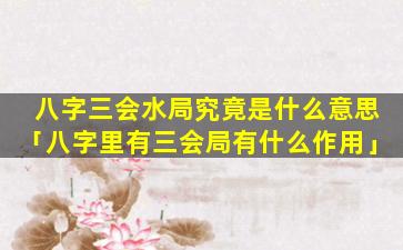 需要注意的是,三会水 🐬 局的吉凶程度还需要结合八字中的其他因素来综合判断。