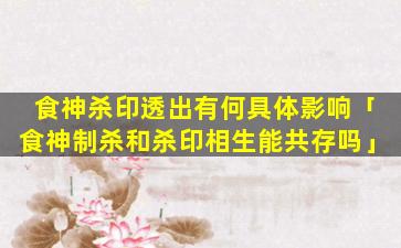 食神杀印透出是指 🌼 食神、伤官 🐧 印(星)通根透干,生,扶日主同时七杀也通根透干。这种格局具 🌿 有以下具体影响: