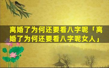 离婚 🕸 后还 🐳 要看八字可能出于以下原因: