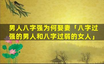 八字 🦆 过强的男人 🦅 和八字过弱的女人