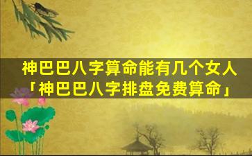 我不确定“神巴巴八字 🌲 免费算婚姻”是什么意思。如果它是一个网站或应用程序,请,提。供更多信息或链接以便我可以为您 🐈 提供更多详细信息