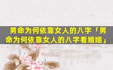 传统命理中,男命看婚姻不完全依 🐞 靠女人的八字。主。要参考的是男命的八字和女命的八字的合婚
