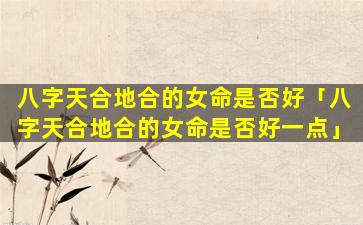 因此,八,字天合地合的女命是否好需要根 🦢 据具 🌲 体八字命盘进行综合分析。