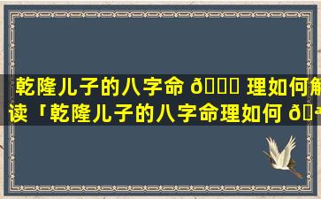 乾隆皇 🐬 帝的 🐡 八字 ☘