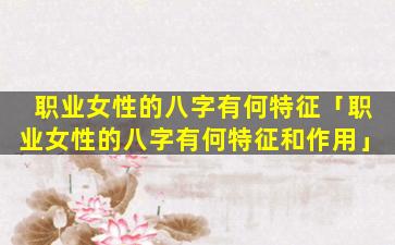 八字作用对于职业 🐒 女性来说,上 🐵 述特征的八字具有以下作用: