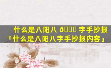八阳八字手 🐕 抄报内容 🦄