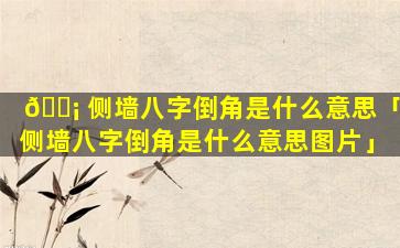 在建筑中,“侧墙八字倒角”指的是侧墙侧(面的 🦁 墙体的)两,端分别向外倾斜形成类似八 🦈 字形的倒角。
