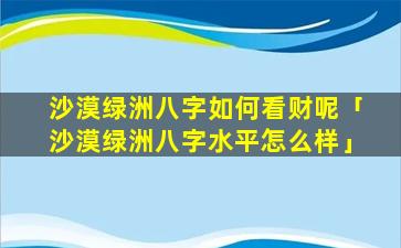 “沙漠 🐈 绿洲”八 🐅 字看财:
