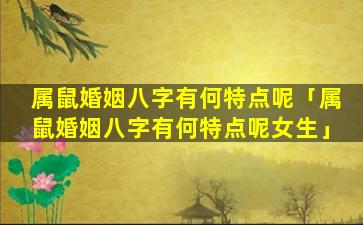 属鼠女生婚 🌻 姻八字特 🐟 点 🐶
