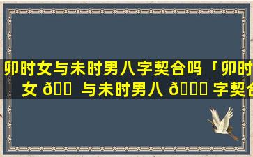 卯时女和未时男的八字合不合,需,要根据具 🦟 体八字分 🌺 析不能一 🐦 概而论。