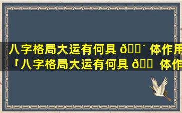 需要强调的是,大,运的影响并非一成不变需结合 🐈 八字命局整体格局和流年运势具体分析。