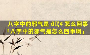 在八字命理中,“邪 🐠 气 🐡 ”一,般指八字格局中出现的一些不吉利的组合或条件这些组合或条件容易引来凶祸或不利的影响。