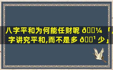 当八字中五行力量均衡,无,明,显强弱之分金木水火土 🐕 都比较调和则称为八字平和命。