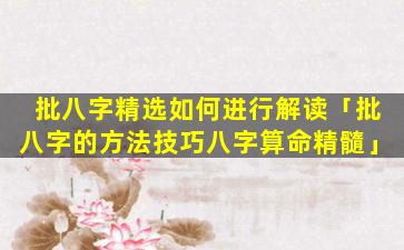 批 ☘ 八 🐞 字的方法技巧 🌲