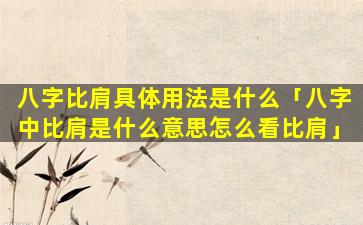 比肩在 🌴 八 🌳 字中的含 🌷 义