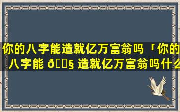 请勿迷信八字预测,将 🐳 其作 🦆 为财富积累的唯一指南