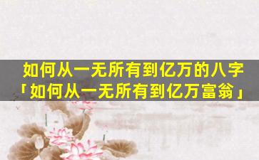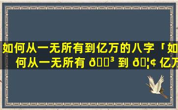 如何从 🦈 一无所有到亿 🪴 万 🐵 富翁